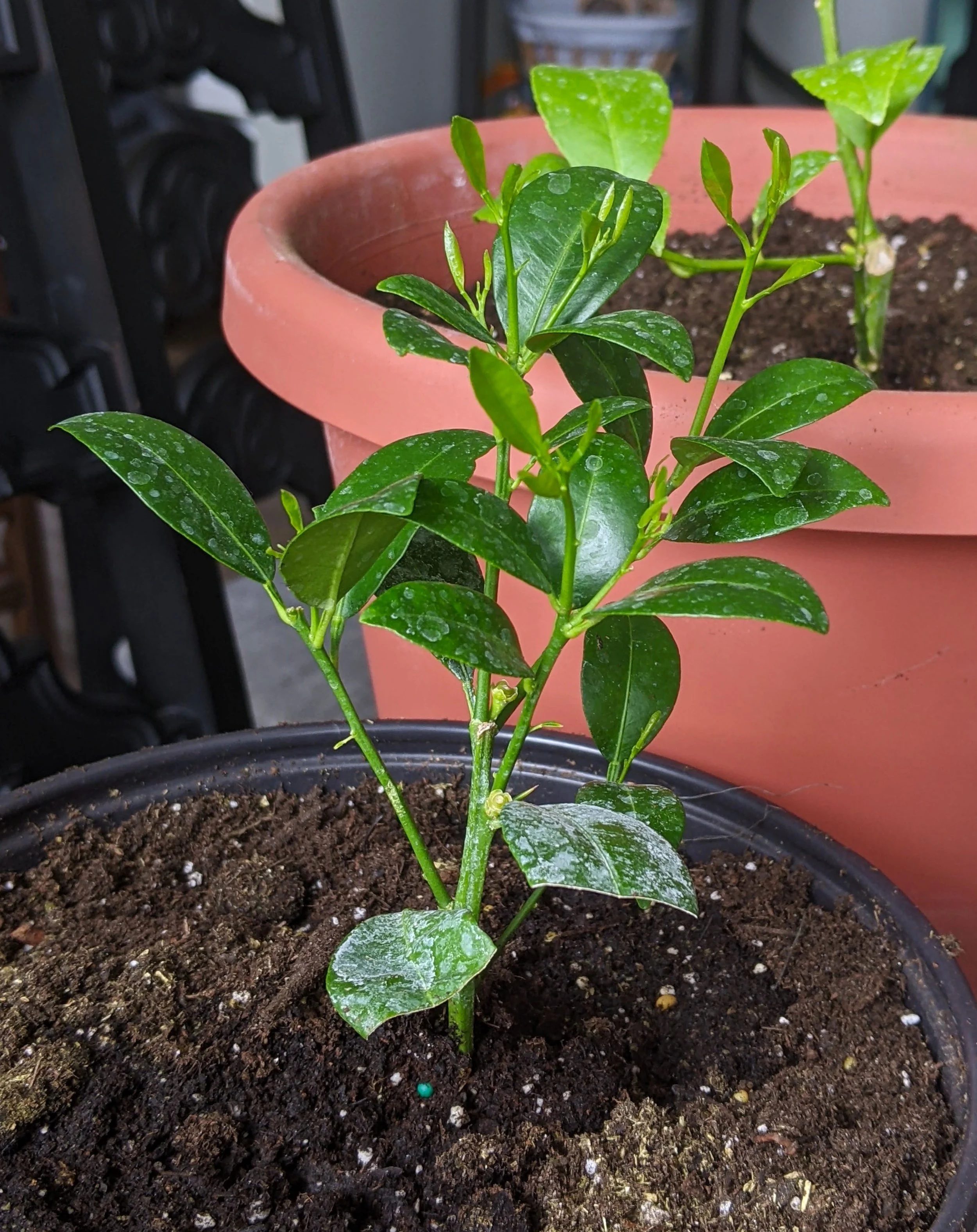 However, these new little sprouts aren’t the only thing new that’s going on. This week, I got the Valencia Orange tree I’ve been waiting to arrive. It’s much smaller than my Key Lime and Meyer Lemon trees but I think it just makes it all the more precious. I’m just glad that my trio of citrus trees could finally be together. All the citrus trees seem to be doing very well in their new pots and seem to have a little bit of growth. The lemon tree has a tiny lemon coming on which is crazy to me, I don’t know if it’s going to actually grow into a lemon because my tree is still very small. But it’s very nice to see it trying to be a lemon tree. Who knows, maybe it will surprise me. Crazier things have happened.